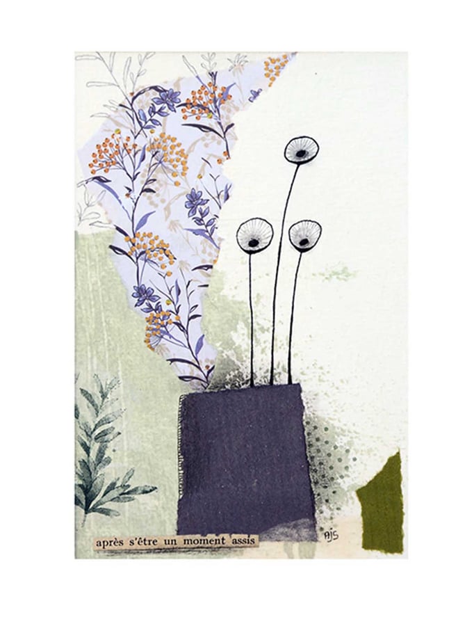 Extraits de la collection "Nature & Objets sur papier" une sélection d'œuvres réalisées en technique mixte, peinture et collage sur papier épais.