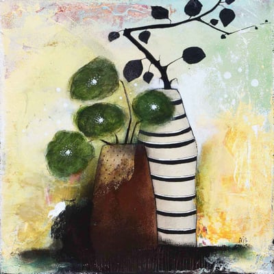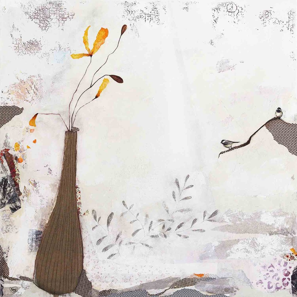 Extraits de la collection "Nature & Objets sur toile" une sélection d'œuvres réalisées en technique mixte, peinture et collage sur papier épais.
