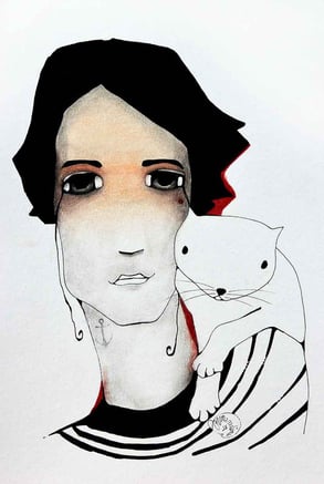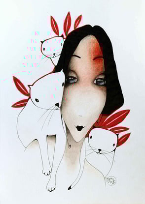Extraits de la collection "Invasion féline" une sélection d'œuvres réalisées aux crayons à base huile sur papier.