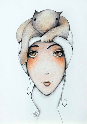 Extraits de la collection "Invasion féline" une sélection d'œuvres réalisées aux crayons à base huile sur papier.